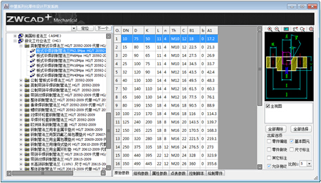機械圖庫是機械設計師最為青睞的設計功能,無論是標準零件還是符號,均可直接調用,相比圖塊更加快捷。在中望CAD機械版的圖庫中,大約收入有47大類2800多種零件,近200000個零件,涵蓋了機械、重工、汽車、模具等領域,是我們所接觸到的機械制圖軟件中數量最多、范圍最廣的標準零件圖庫。