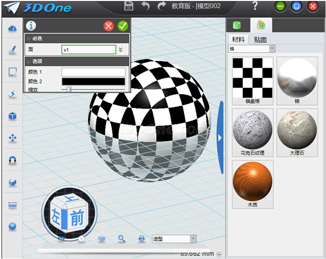 圖2:3DOne教育版提供了應用樂趣:自由選擇材質