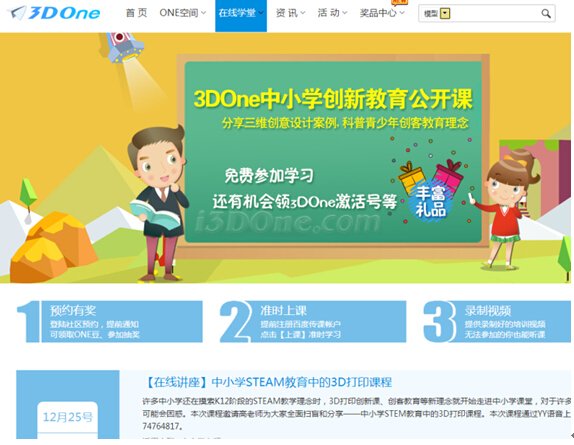 小編還了解到,不僅是3DOne軟件本身具有眾多適合青少年使用習慣的亮點功能,而且在其i3DOne社區上,還有系統化配套的中小學3D打印設計創意課程,包括在線學習公開課程http://www.i3done.com/news/school/train.html,而且還有大量的語音教學視頻、教學案例、圖紙模型,讓學生可以即時參加線上培訓,與名師互動探討交流。3DOne家庭版和教育版均可暢享這些資源,在爸爸媽媽的指導下體驗3D創意樂趣。