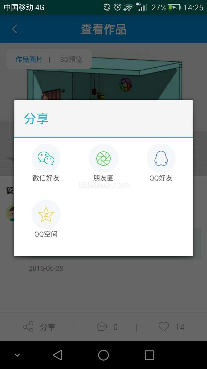 畫好的圖紙,上傳到社區里,怎么讓更多的人欣賞到自己的作品呢?老師、家長們安裝上APP,可以率先第一時間查看,并可以分享到微信、QQ空間,讓更多的人欣賞到孩子們的有趣創意成果。
