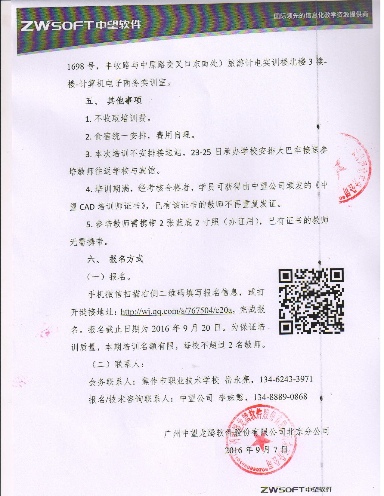 4. 培訓期滿,經考核合格者,學員可獲得由中望公司頒發的《中望CAD培訓師證書》,已有該證書的教師不再重復發證。