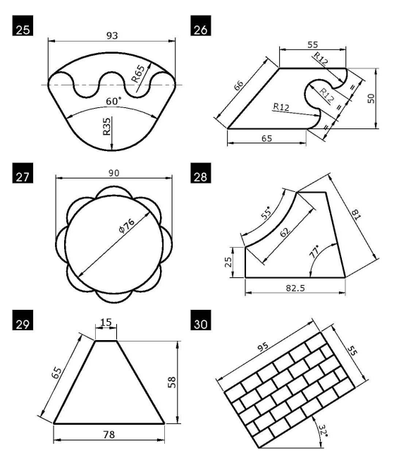 中望CAD培訓(xùn)欄目特地為大家準(zhǔn)備了CAD練習(xí)圖全集,目前已經(jīng)給大家發(fā)過(guò)50張練習(xí)圖供大家練習(xí)。今天小編也為大家準(zhǔn)備了十張復(fù)雜圖形讓大家練習(xí)。大家可以通過(guò)鏡像、旋轉(zhuǎn)等命令繪制以下圖形。