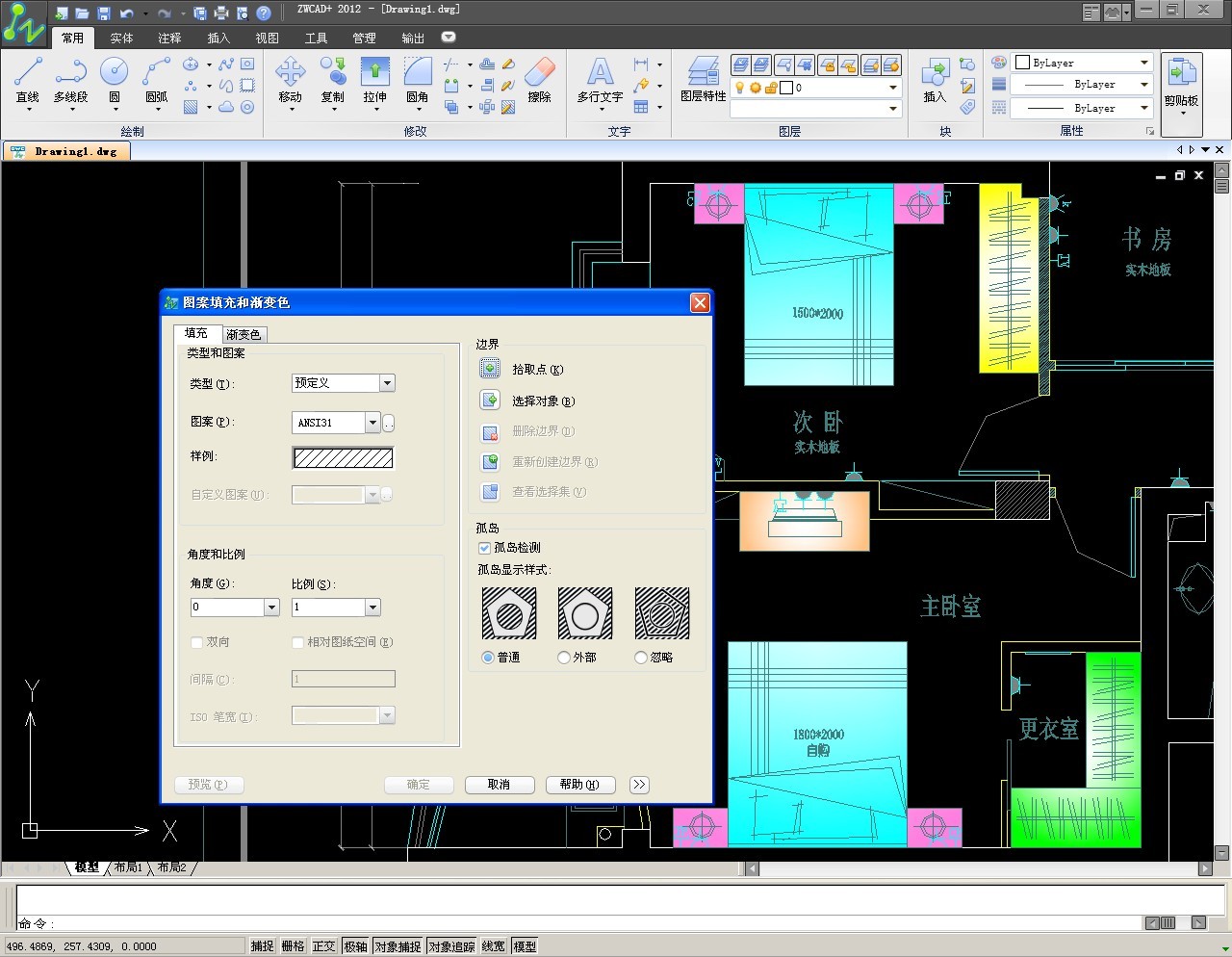填充 擁有豐富的填充圖案供用戶選擇,可自行定義新的圖案樣式,保存在填充文件中供調(diào)用。中望CAD+除了支持普通填充功能,還支持漸變填充,能夠使圖紙更具可讀性。