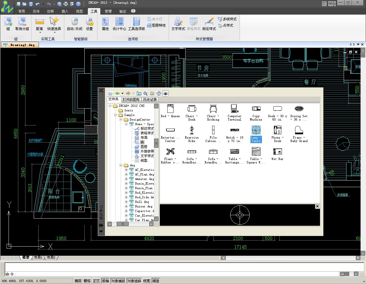 設(shè)計(jì)中心 通過中望CAD+設(shè)計(jì)中心,用戶可以組織對圖形、塊、圖案填充和其他圖形內(nèi)容的訪問,還可以將源圖形中的內(nèi)容如塊和圖層,拖拽到當(dāng)前圖形中,無論源圖形是位于用戶的計(jì)算機(jī)或網(wǎng)絡(luò)位置。