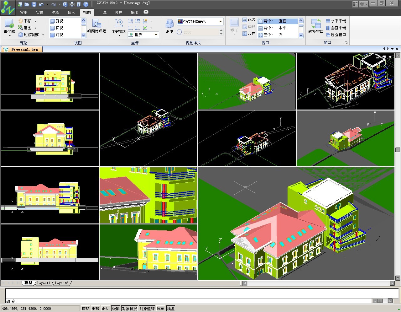 視口 布局和模型空間都可以建立多個(gè)視口,且視口的觀察角度和視覺樣式都可以獨(dú)立設(shè)置,該功能在三維設(shè)計(jì)時(shí)更為方便。