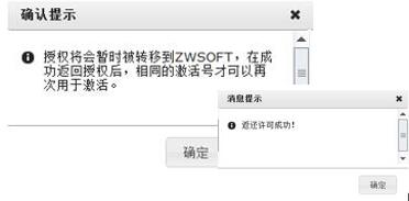1.4點擊“確定”按鈕,提示“返還許可成功”后,返回授權完畢。