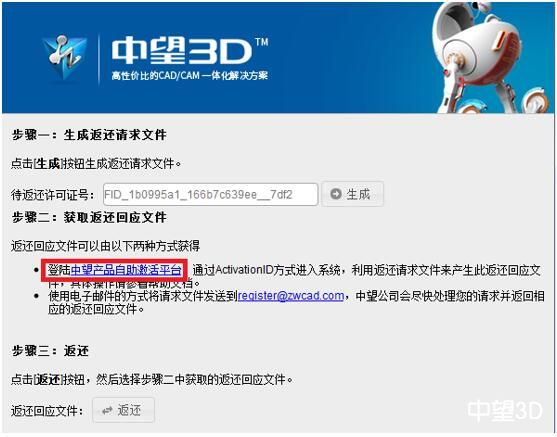 如果沒有提前返回,請將激活號發送給3dservice@zwcad.com,注明情況,將由售后人員協助強制返還,并將激活號發還給您使用。