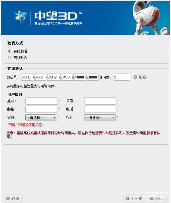 如果注冊失敗,請與中望公司3dservice@zwcad.com聯系。