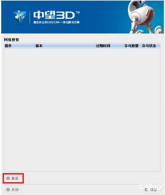 2.2.2在“中望3D網絡許可管理程序(軟加密)”中單擊左下角的“激活”按鈕。