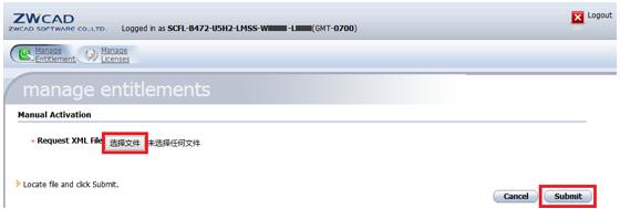 點擊“選擇文件”導入激活請求文件,點擊“提交(Submit)”按鈕。