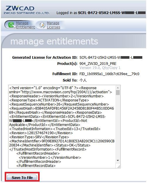 點擊“保存到文件(Save To File)”,將激活文件(xml文件)保存到本機。