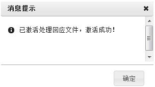 成功注冊將提示“已激活處理回應文件,激活成功!”。