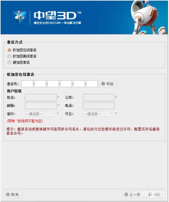 3. 重裝電腦或更換硬件前請務必返回激活號,否則激活號失效