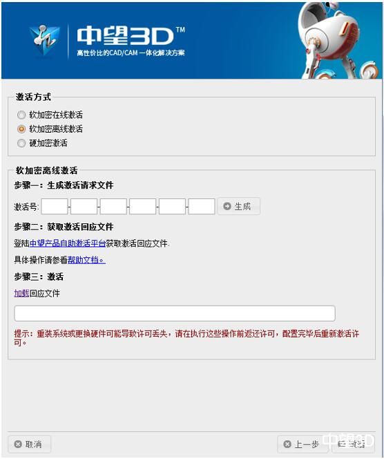 成功注冊將提示“已激活處理回應文件,激活成功!”如果注冊失敗,請與中望公司3dservice@zwcad.com聯系。