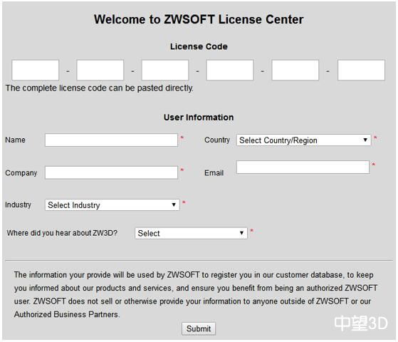 ②. 根據提示輸入24位完整“激活號(License Code)”,并填寫打星號的項目,填寫完畢,點擊“提交(Submit)”。其中: