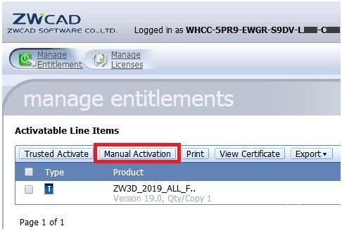④. 在管理授權頁面,勾選所需激活項目,并點擊“手動激活(Manual Activation)”。