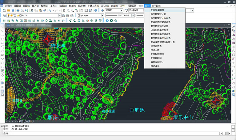 在后期的服務過程中,中望軟件發現杭州園林在項目設計和規劃中仍存在效率低下的情況:設計師經常要做大量樹木的布置與統計、灌木叢和草坪等區域面積統計等,這些繁瑣人工操作不僅需要花費數小時甚至幾天的時間,偶爾也會因遺漏而導致統計數據的錯誤。而這些問題,完全可以通過定制開發來解決。最終,中望軟件在2013年就為杭州園林開發出了具有針對性的“沿線部樹、樹木連線、統計數木、閉合云線填充、閉合云線面積統計”五個功能,極大地簡化了設計師的手工操作。隨后,中望軟件應用研發工程師繼續深入企業內部,在與一線設計師深入交流、充分了解設計需求的基礎上,將定制開發的園林景觀功能進一步擴充并優化,形成完善的中望景園專業軟件。如今,杭州園林已經大規模應用了中望景園設計軟件,真正實現了園林景觀的智能化設計與統計。
