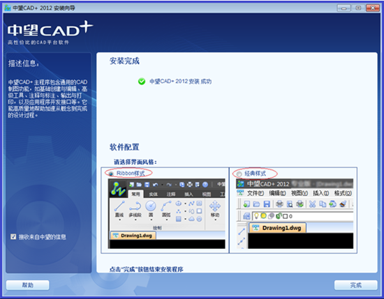 中望CAD2012在安裝過程界面設計更加細膩以及人性化。