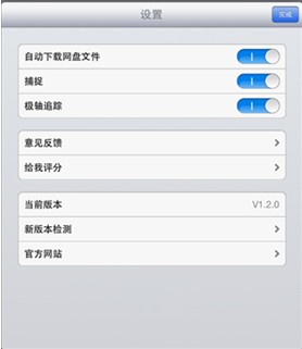 為了統一管理更多功能,及方便用戶了解當前版本狀態和進行意見反饋,在主界面新增設置面板。進入初始界面點擊左上角還有一個設置按鈕即可進入設置版面(圖3)。用戶可以設置是否自動下載網盤文件、是否開啟捕捉和極軸、查看當前版本號、及查詢是否有新版本發布。用戶還可以給中望公司反饋意見,意見反饋會打開一個類似微信的界面,用戶可以在此與中望的客服實時聊天,也可以連接到App store讓用戶給中望CAD Touch打分,或直接進入中望公司的官網。