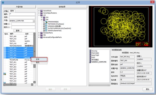 此外,為了進一步提高工程師找圖的準確性,中望軟件還在ZIW上設計開發了產品列表和圖紙預覽等功能。通過操作界面右側的圖紙預覽窗口,工程師用戶對圖紙文件的層次關系一目了然,并且可快速預覽圖紙的圖形信息,而無需使用系統打開ProductView進行查看就可以準確定位所需圖紙,節省“找圖”時間。