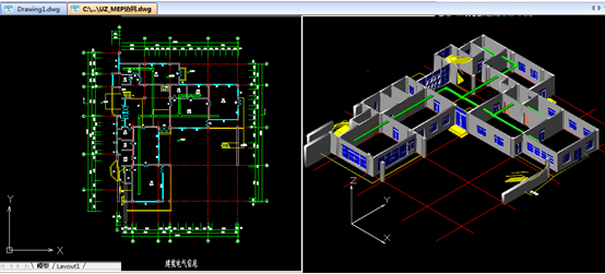 中望軟件推出的工程建設(shè)整體解決方案實現(xiàn)二三維設(shè)計一體化,二三維同步設(shè)計,設(shè)計師在繪制二維圖紙的同時,軟件自動同步搭建三維模型。更重要的是,中望CAD的二維施工圖繪制符合設(shè)計師的使用習(xí)慣,符合國家相關(guān)規(guī)范和標(biāo)準(zhǔn),三維模型真實可用,且操作十分便捷。設(shè)計師在繪制二維平面圖的過程中,可以在另外一個視口看到同步的三維模型,隨時檢查布置的管線和設(shè)備是否出錯,從而大大提高了設(shè)計效率。