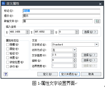 超級屬性塊定義功能位于界面菜單的【系統維護工具】中,定義表格過程中,可以通過鍵入命令_DDEDIT,將需要填寫的內容設置成為屬性文字。如下圖1所示界面進行屬性文字設置。