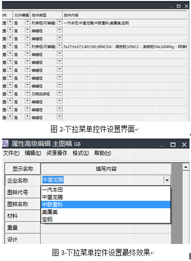 中望CAD機械版高級屬性塊的定義提供了將填寫框可以設置成為下拉菜單的功能,如下圖2所示進行設置。填寫時直接將文字在下拉菜單中選擇,簡化手動填寫的工序,大大提高繪圖效率。