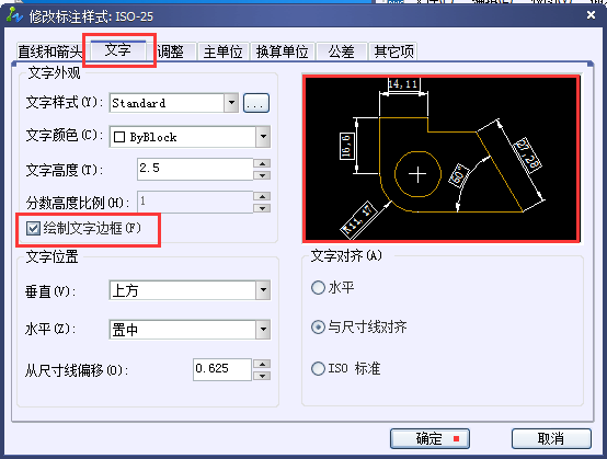 如何實(shí)現(xiàn)這個(gè)效果呢?方法:格式——標(biāo)注樣式——修改——文字——勾選文字外觀下面的“繪制文字邊框”——確定。可參考下圖: