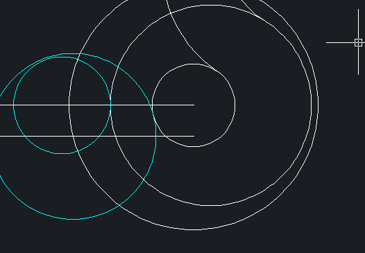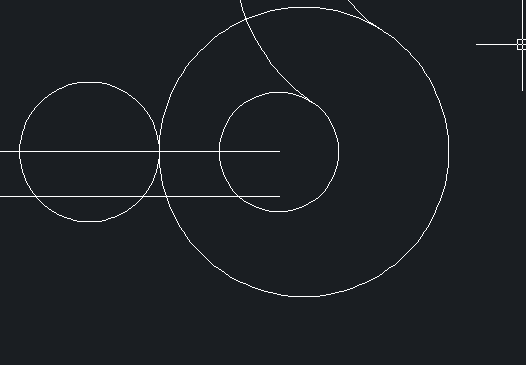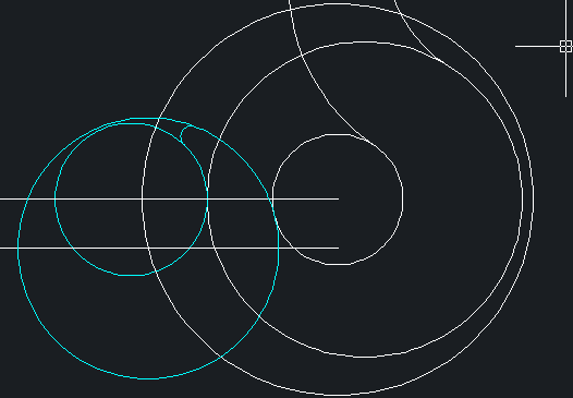 5、在下方大圓左邊象限點畫外接圓,半徑為14,再畫一條水平直線, 往下偏移9。