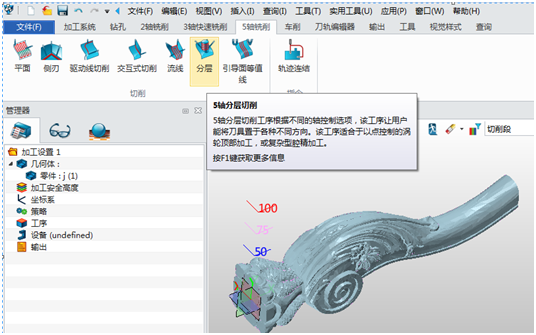 第三步 :選擇加工工序,進(jìn)入加工界面后選擇5軸分層切削(如圖4)。