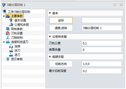 首先,設(shè)置刀軌公差0.1MM,切削深度0.2MM,切削方向?yàn)椋?,0,0)(如圖6),其余用默認(rèn)參數(shù)。