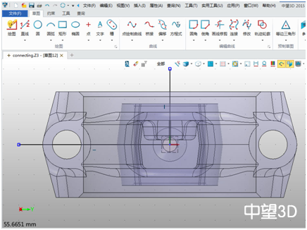 第一步:首先用中望3D創建草圖,用來輔助創建2D剖面線,選擇草圖平面(即高亮面),然后按中鍵進入到草圖繪制界面。