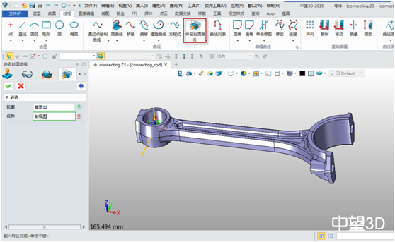 第二步:先點擊線框功能下的“命名剖面曲線”,選擇之前繪制好的草圖,然后輸入名稱任意名稱。