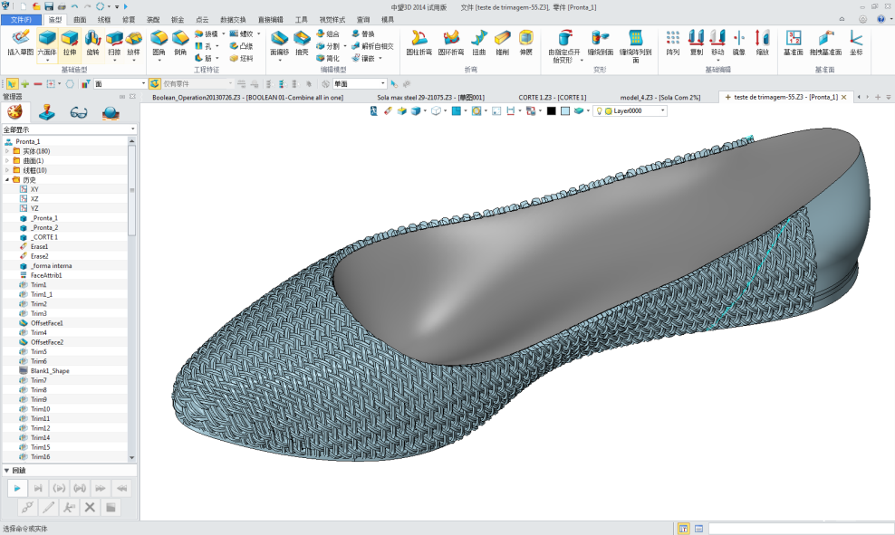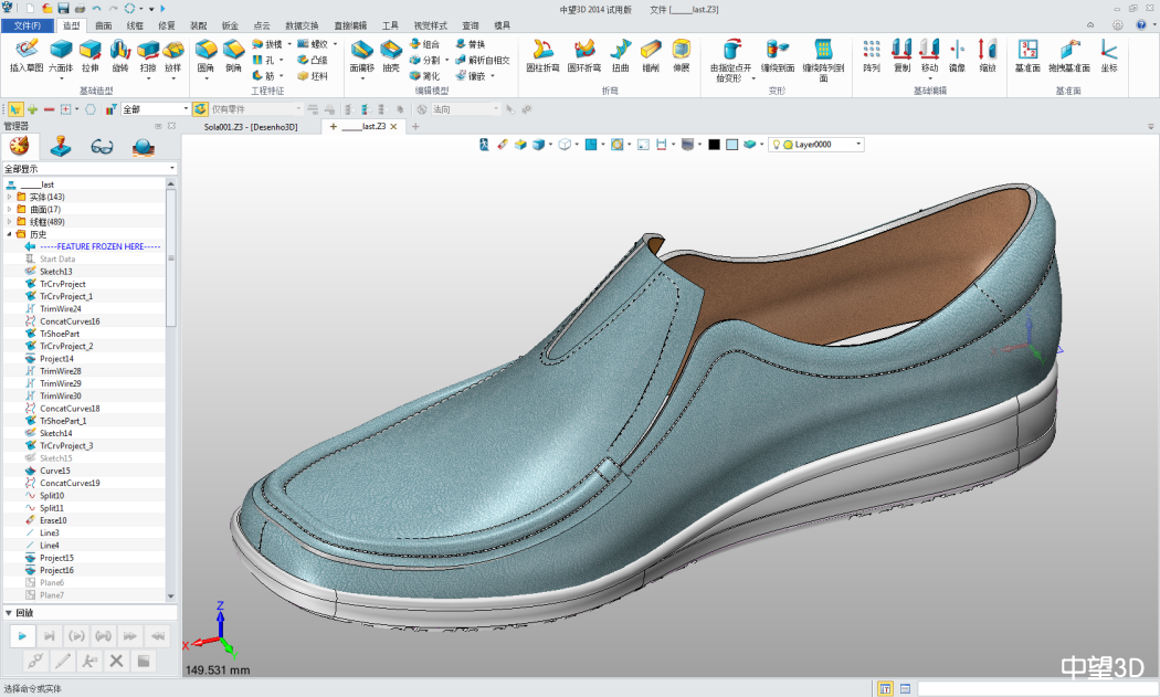 作為一款三維CAD設計軟件,中望3D擁有獨特的混合建模技術,非常靈活自由的在實體曲面之間進行任意的操作,無論在鞋底還是鞋面的設計中,都能快速高效的完成設計工作。