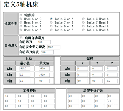 第四步 :后處理的運動范圍與參數,修改A軸B軸的運動范圍(如圖5),修改點公差和面公差提交(如圖6)。