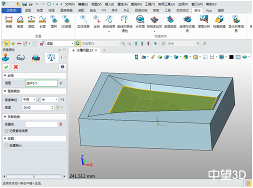 5. 利用查詢質量屬性,查詢水體積體,保存變量屬性