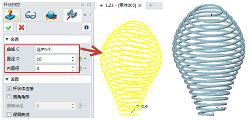 下面我們來看看國產三維CAD軟件中望3D是怎樣快速實現異形彈簧的創建的: