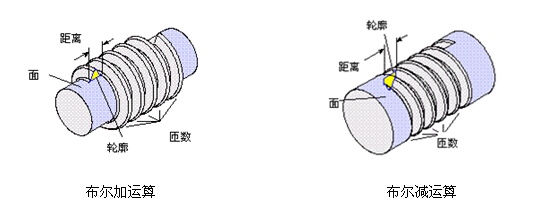 圖2 操作螺紋命令時,布爾加減運算的不同效果視圖