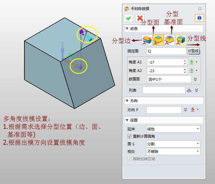 下面,我們將對中望3D設計拔模角度的操作過程中需要注意的一些點進行說明。
