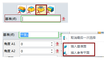 3.基準面:該方法對所選的基準面或者基準點進行拔模(圖7),可通過右側下拉菜單隨時插入基準面或者基準點。