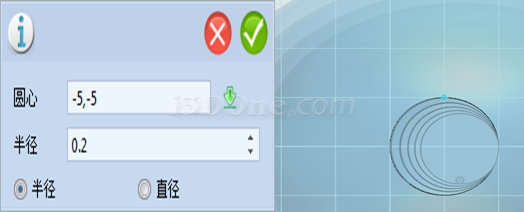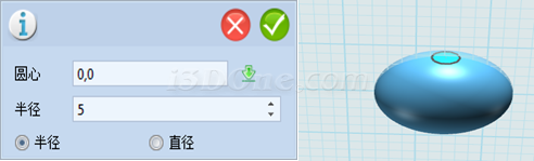 5、選擇平面繪制區域,點擊草圖繪制,選擇圓形,輸入圓心(-5,0),半徑5,可得: