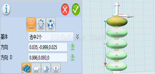 ,選擇全部造型,輸入方向如圖,距離-175,數量5個,可得: