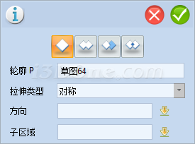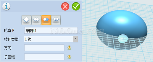 6、選擇特殊造型,點擊拉伸,選擇圓形,輸入拉伸高度-5,可得: