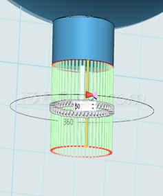 11、選擇基本編輯,點擊陣列,選擇圓形陣列,點擊先前拉伸造型,輸入方向如圖,數量50個,可得: