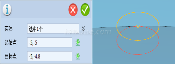 10、選擇基本編輯,點擊移動,將圓形移動到如圖位置,再選擇拉伸,輸入距離10.可得: