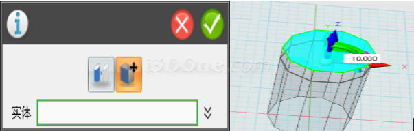4、選擇基本編輯,點(diǎn)擊移動(dòng),選擇動(dòng)態(tài)移動(dòng),點(diǎn)擊Z軸,輸入移動(dòng)值-10,可得: