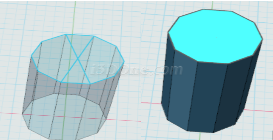 3、選擇造型的上表面,點(diǎn)擊草圖繪制,選擇直線,繪制相交兩條直線,再點(diǎn)擊正多邊型,點(diǎn)擊兩線段交點(diǎn),輸入半徑20,邊數(shù)10,角度0,再按Delete,刪除直線,可得: