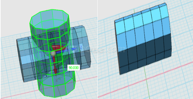 7、選中整個(gè)造型,選擇基本編輯,點(diǎn)擊移動(dòng),選擇動(dòng)態(tài)移動(dòng),拉動(dòng)XZ轉(zhuǎn)動(dòng)命令,輸入90,可得: