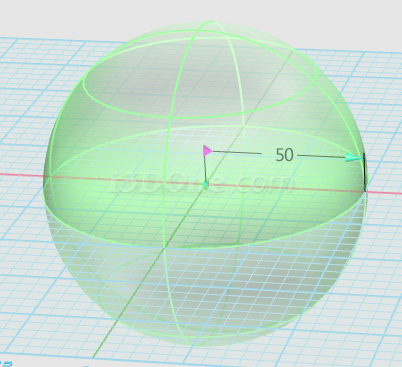 ,繪制一個球體,輸入半徑“50”如下圖,點(diǎn)選