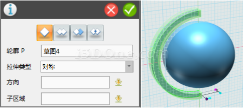 ,對上面的草圖進(jìn)行拉伸,拉伸類型選擇對稱,如下圖,拉伸高度8mm,選擇